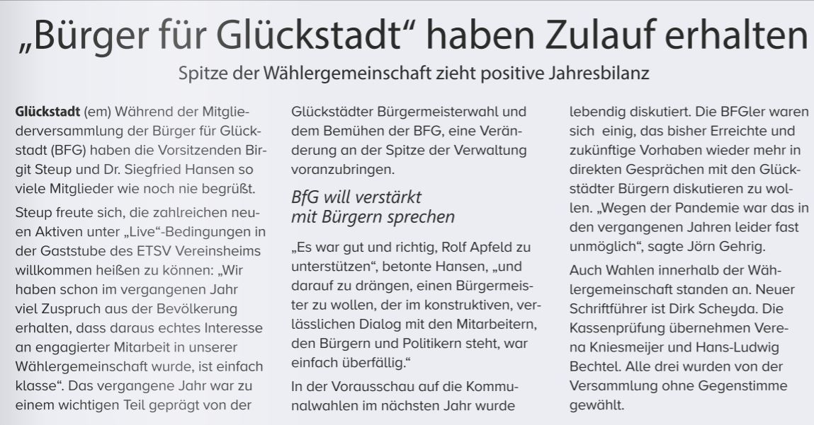 18.05.2021 – Pressemitteilung „Bürger für Glückstadt“: Neuer Vorstand bei der BFG > Download