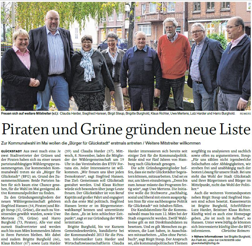 23.10.2017 – Pressemitteilung: Wählergruppe „Bürger für Glückstadt“ BFG gegründet > Download