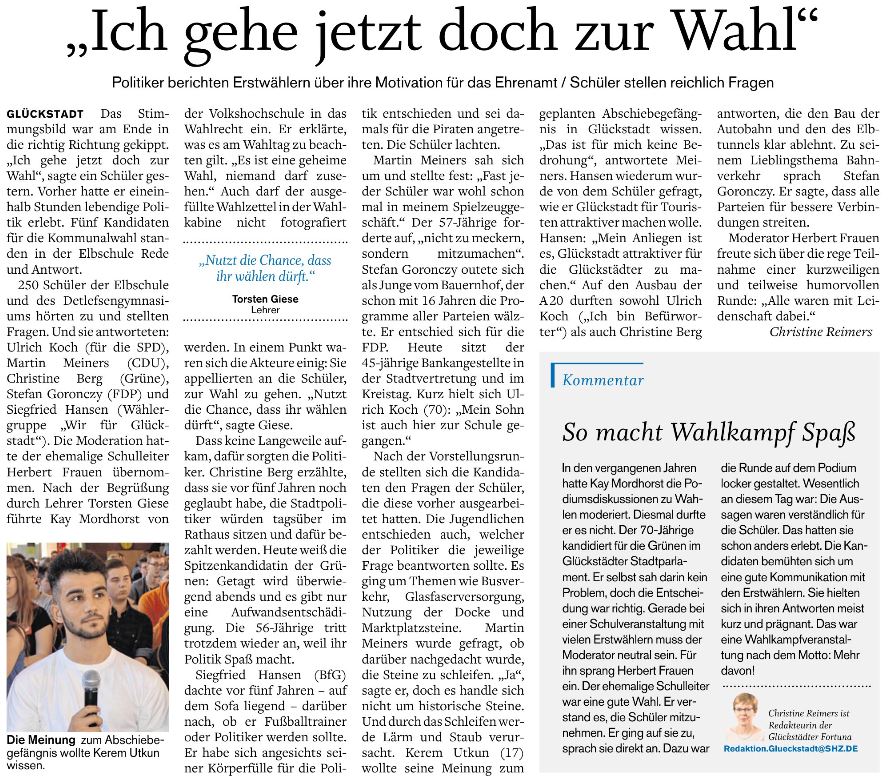 15.05.2023 – Pressebericht Glückstädter Fortuna: „Wahl zur Stadtvertretung in Glückstadt“ > Download