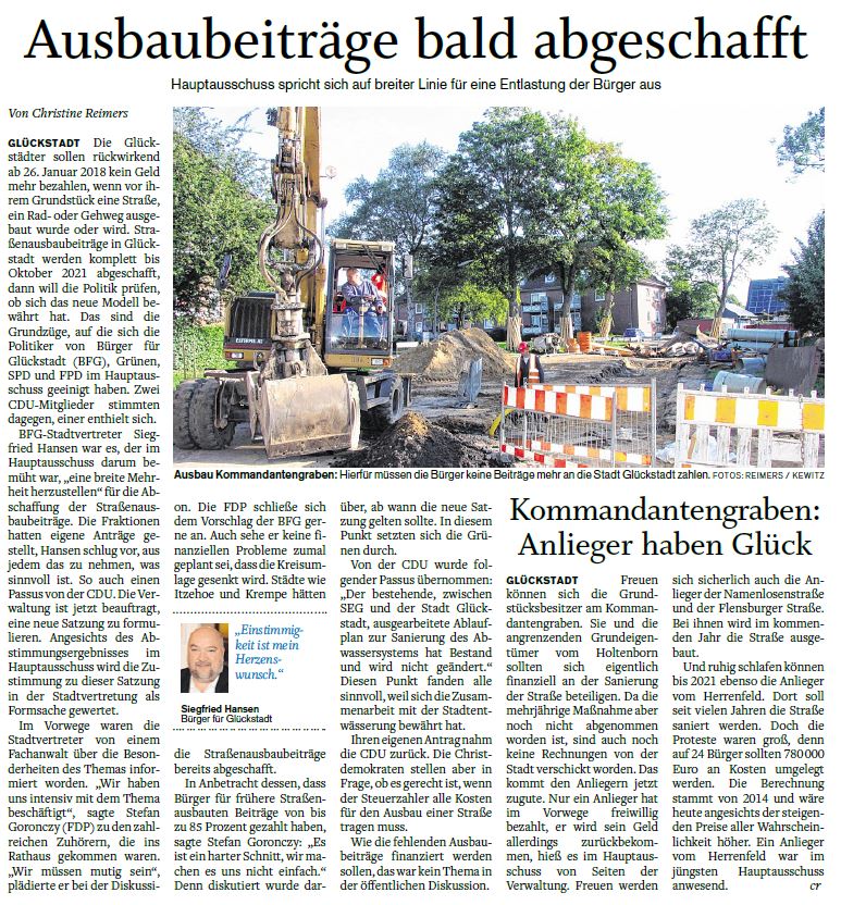 06.01.2018 – Pressebericht Glückstädter Fortuna: BFG lehnt Straßenausbaubitrag ab > Download