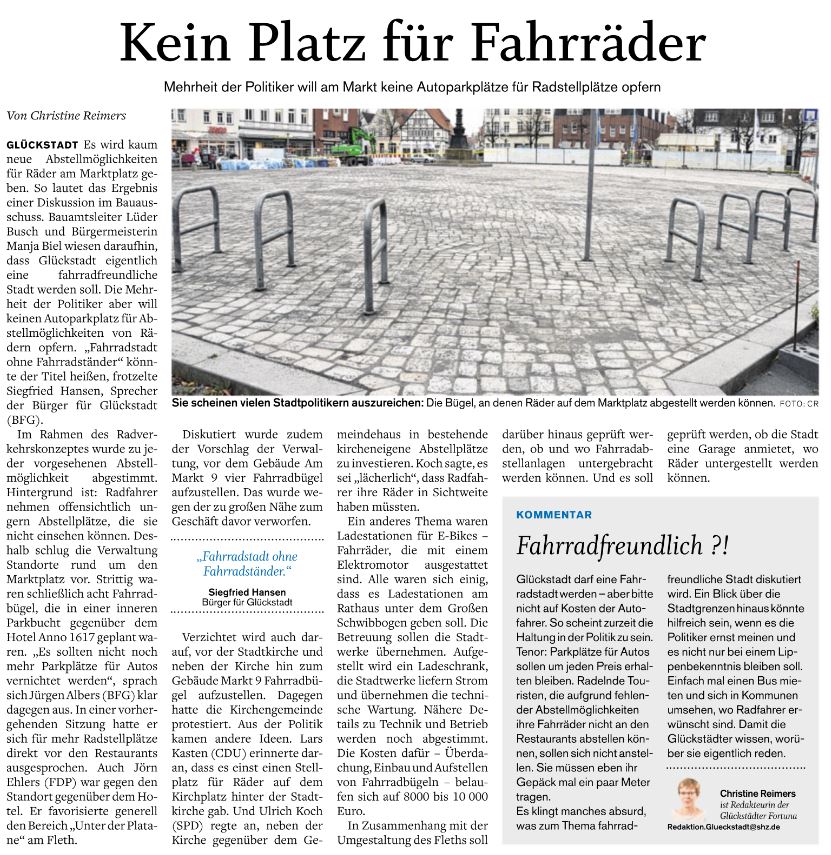 01.12.2018 – Pressebericht Glückstädter Fortuna: „Diskussion über Radstellplätze geht weiter“ > Download